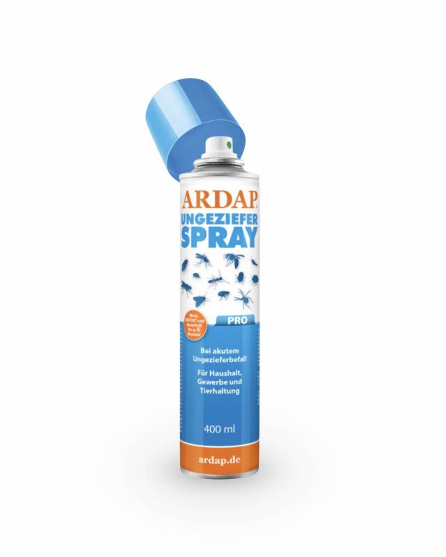 Das Ardap Pro Ungezieferspray ist ein echtes Universalspray zur Bekämpfung unterschiedlichster Schädlinge im Haus und im tierischen Umfeld. Wirkt sicher gegen: Fliegen, Mücken, Motten, Ameisen, Silberfischchen, Spinnen, Flöhe, Milben, Läuse, Schaben, Käfer und anderes kriechendes Ungeziefer. Damit eignet es sich ideal, um Insekten in Haus, Stall oder Garten zu bekämpfen und einem erneuten Befall vorzubeugen.