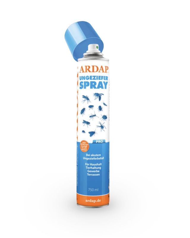Das Ardap Pro Ungezieferspray ist ein echtes Universalspray zur Bekämpfung unterschiedlichster Schädlinge im Haus und im tierischen Umfeld. Wirkt sicher gegen: Fliegen, Mücken, Motten, Ameisen, Silberfischchen, Spinnen, Flöhe, Milben, Läuse, Schaben, Käfer und anderes kriechendes Ungeziefer. Damit eignet es sich ideal, um Insekten in Haus, Stall oder Garten zu bekämpfen und einem erneuten Befall vorzubeugen.