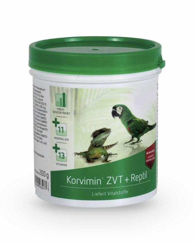 Korvimin® ZVT ist ein Mineralfuttermittel für Ziervögel, Tauben und Reptilien zur kurzfristigen Vitamin- und Mineralstoffversorgung. Die ausgewogene Kombination aus Vitaminen, Aminosäuren und Spurenelementen unterstützt in Phasen mit erhöhtem Bedarf – z. B. bei Mauser/Häutung, Stress oder unausgewogenen Rationen.