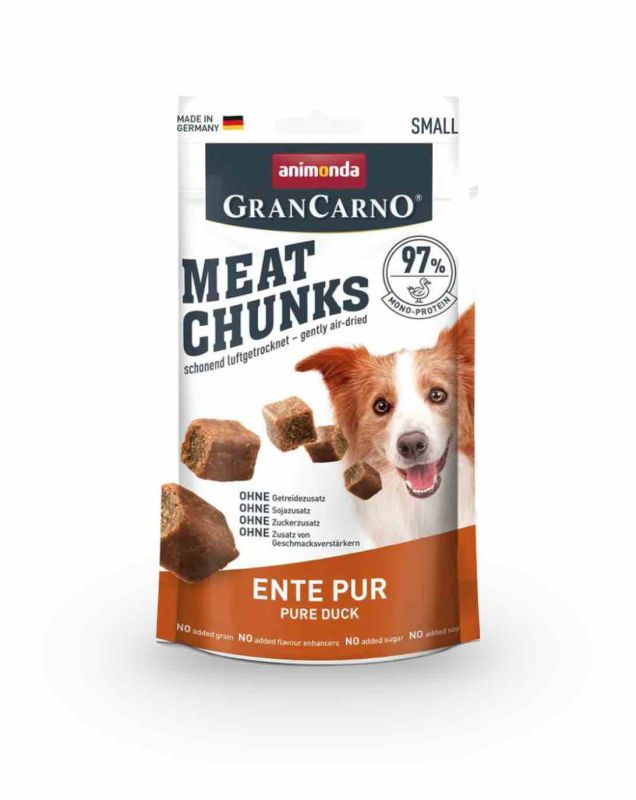 Die animonda Grancarno Meat Chunks Ente Pur sind besonders schmackhafte Trainings-Leckerlies für Hunde – ideal als Belohnung beim Hundetraining, in der Hundeschule oder für Übungen zwischendurch. Mit Single Protein Ente, getreidefrei und schonend luftgetrocknet für natürlichen Geschmack und hohe Motivation.