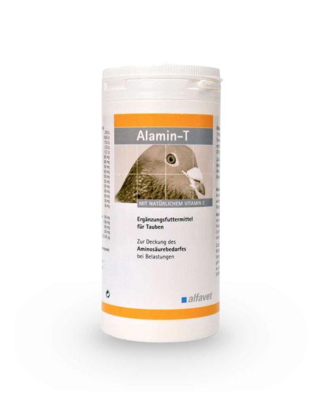 alamin-T (Alfavet) ist ein Ergänzungsfuttermittel für Tauben, speziell für die Anforderungen von Brieftauben. Es dient der Deckung des Aminosäurebedarfs in Phasen erhöhten Bedarfs – z. B. im Wachstum, in der Mauser, in der Zucht sowie während der Reisesaison, wenn körpereigenes Eiweiß zur Energiegewinnung herangezogen wird. Enthält essentielle Aminosäuren (u. a. Methionin, Cystin) plus B-Vitamine, Mineralstoffe und leicht verdauliche Energielieferanten – für eine gute Regeneration und Federbildung bei Brieftauben.